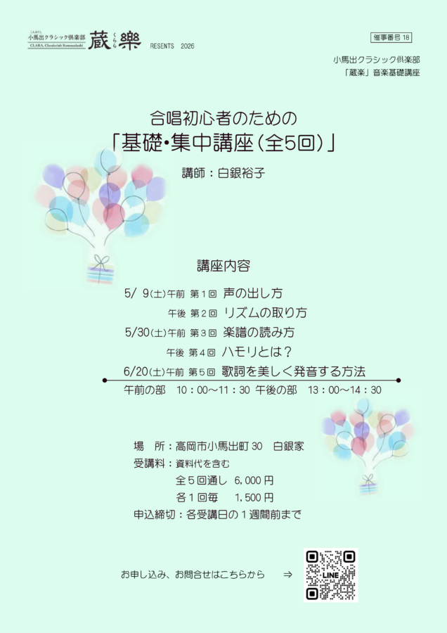 合唱初心者のための「基礎・集中講座(全5回)」