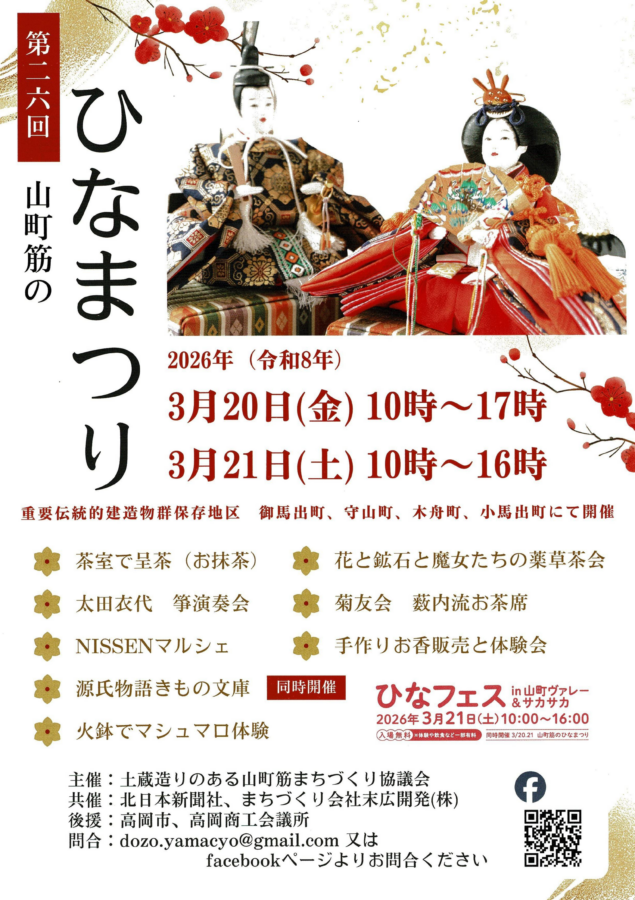 高岡山町筋土蔵造りフェスタが9月20日(土)に同時開催されます。