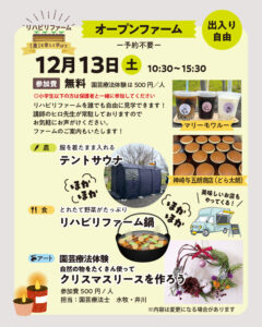 2025年12月13日(土) 10時30分~15時30分 ※入場無料、出入り自由、申し込み不要