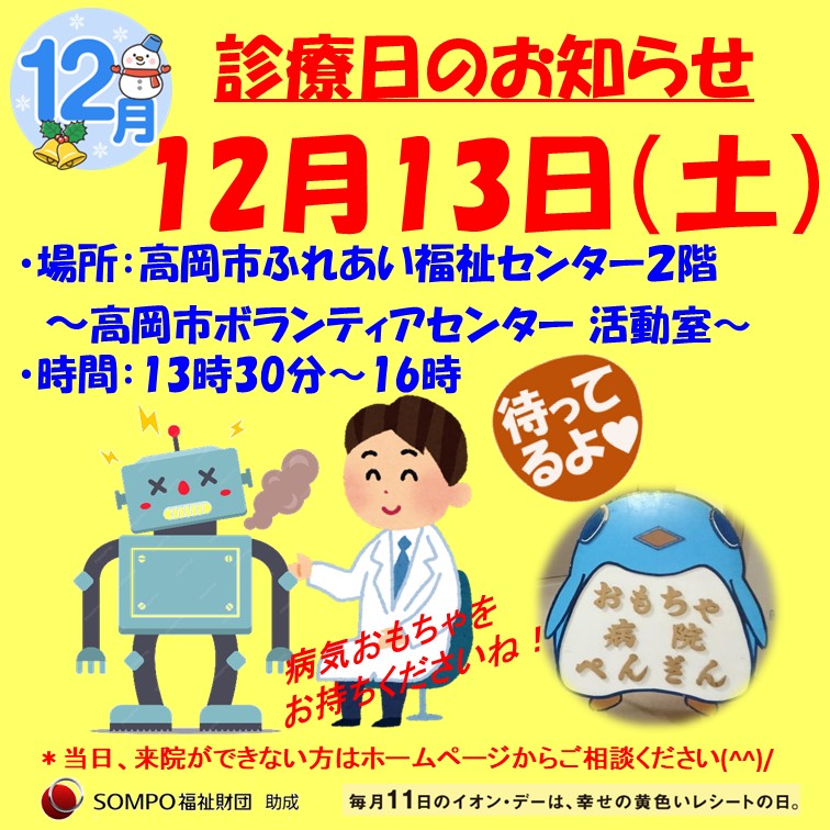 1月の「定期診療日」は1月31日(土)ですので、年内早めにお持ちくださいね!(^_-)-☆