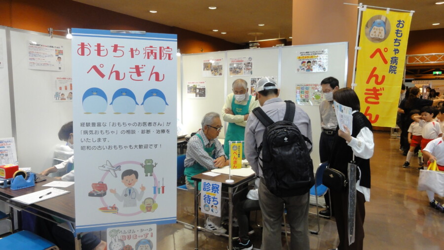 2025/10/12 【”とやま環境フェア2025”出張診療しました!】 おもちゃ病院ぺんぎんは、10月11日(土)~12日(日)の二日間「とやま環境フェア2025」に出張診療いたしました。 おもちゃ病院では、壊れたおもちゃを修理し捨てられるおもちゃを減らし、どうしても治せないおもちゃは分解して”修理交換部品”として再利用することで、わすかではありますが環境改善活動に貢献をさせていただいています。 2日間で14人、21個の来院があり、のべ6人のぺんぎんメンバーで対応いたしました。 会場では”ぺんぎん”および他の富山県内のおもちゃ病院4か所のPRもおこない、多くのお客様におもちゃ病院の存在を知っていただく良い機会となりました。