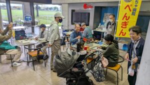 2025/11/01 【”おやべ元気フェス2025”に出張診療しました!】 11月1日(土)「おもちゃ病院ぺんぎん」は”おやべ元気フェス2025”に出張診療しました。 会場では、”ぺんぎん”からは3名、”富山おもちゃ病院”から上木院長のお手伝いをいただき「(仮称)小矢部市おもちゃ病院ドクター見習い」の6名と一緒に会場でお客様をお迎えしました。 受付人数は11人、受付個数は15個、入院は3個となりました。