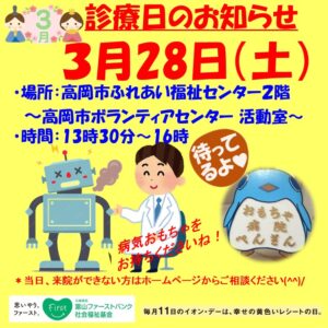 【おもちゃ病院ぺんぎん”活動見学会”のお知らせ!:3月28日(土)】