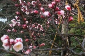 2026/01/07 高岡古城公園 梅が咲き始めました 1月6日(火) 曇り時々雨 気温4度 寒い 暦の上では「小寒」 寒さをこらえて高岡古城公園へ梅を見に行く。 トウジ(冬至)、コウトウジ(紅冬至)が咲き始めている。 昨年の1月25日にはやっとトウジが1輪咲いていただけなのに今年はトウジやコウトウジがかなり咲いている。 昨年に比べて大分早いのかな? それとも昨年が遅かったのかな? コウトウジ(紅冬至) トウジ(冬至) 他の種類の梅はまだ。 2026.1.6 高岡観光ボランティアガイド やまたちばな 本保澄雄